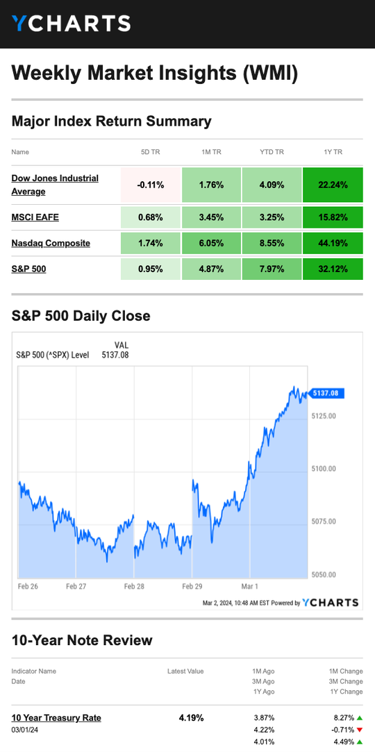 While the Dow dipped lower, artificial intelligence (AI) names powered the gains in the S&P 500 and the Nasdaq Composite. The Nasdaq bobbed around the 16,000 level for most of the week before posting consecutive record highs on Thursday and Friday, surpassing its 2021 record. It was the last of the three major stock benchmarks to reach a record high this year.1